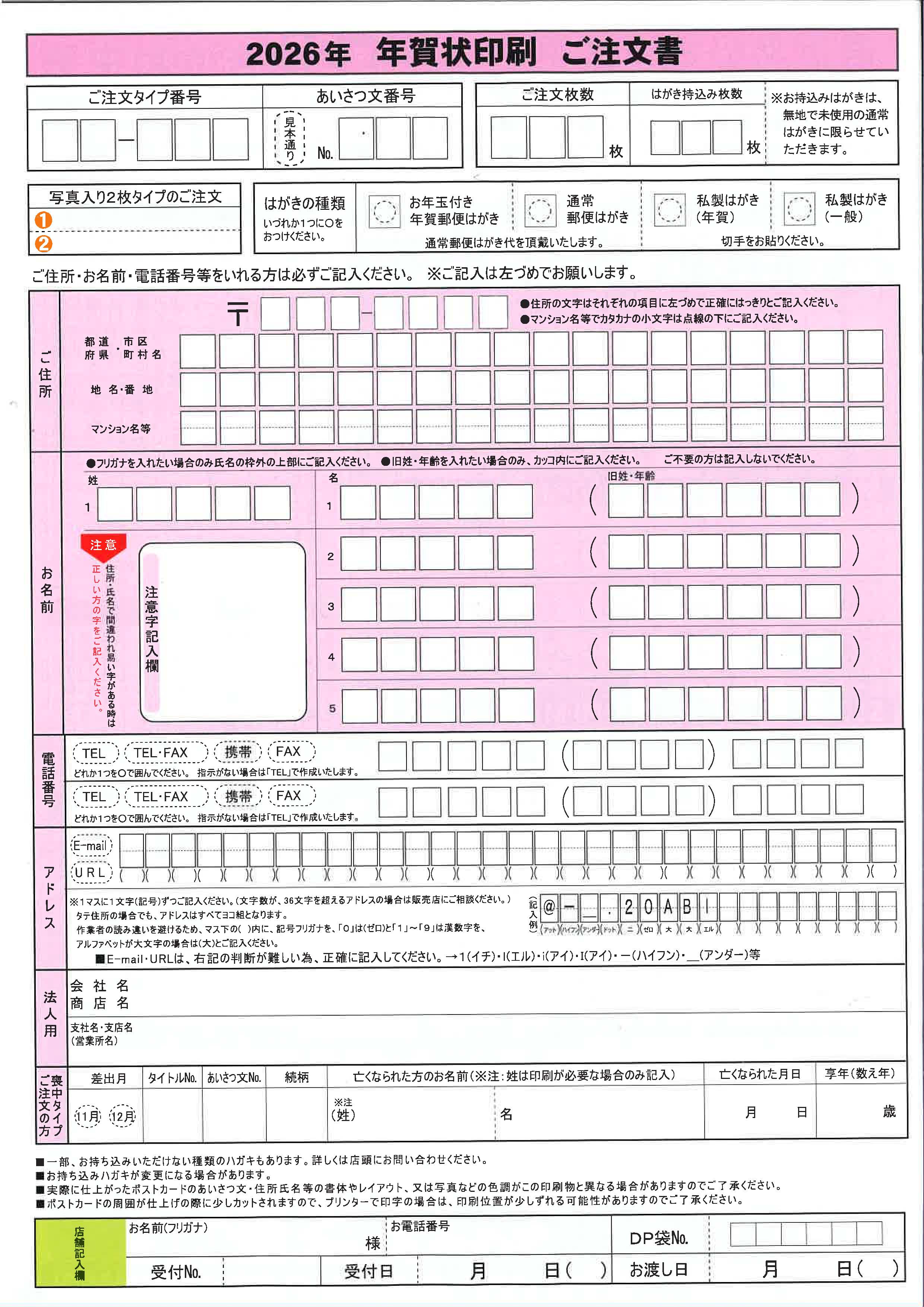 ※インクジェット写真用(95円のもの)、汚れや折れのあるものに関しましてはお預かりできませんのでご了承くださいませ。